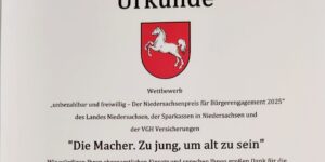 Im Sommer des letzten Jahres haben sich “die Macher – zu jung um alt zu sein” um den “Niedersachsenpreis für Bürgerengagement – unbezahlbar & freiwillig” beworben. Der besondere Fokus lag …